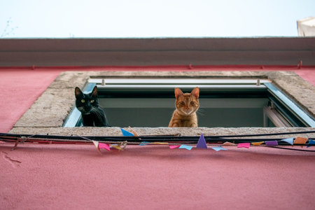 Limassol Cyprus April 11, 2020 View of domestic cat living in the streets of Limassol in Cyprus island