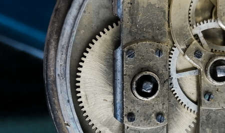 Ancient tiny metal clockwork close up background
