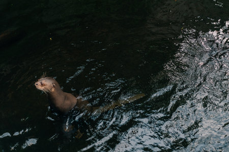 Brazilian otter in the water hunting piranha at the Leipzig Zoo, Germany. High quality photo