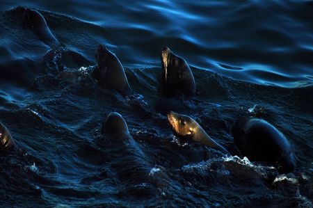 Gray seals in bay in San Francisco, California