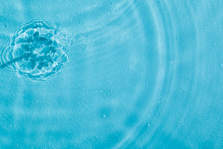 Water splash with ripples and drops on blue background. Abstract background
