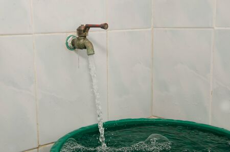 Water flows from the old faucet in the bathroom Retro concept