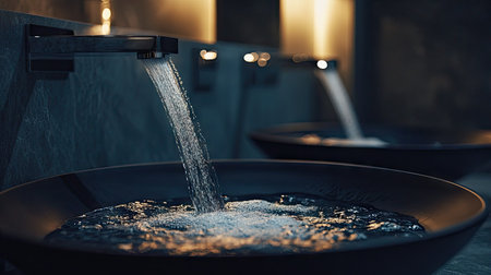 modern wash basin with running water