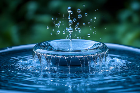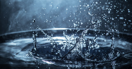 Close-up image capturing the dynamic splash of a water droplet hitting a still water surface
