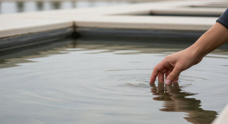 Splashing sea wter and human hand.
