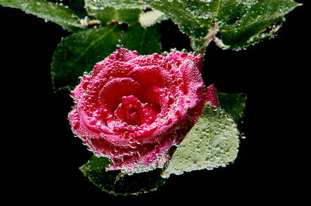 Close-up of delicate rose petals with bubbles. Stock footage. Pink rose petals under water with bubbles. Lots of bubbles on rose in water