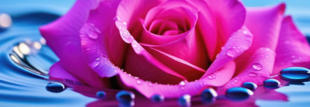 Songkran, Thai New Year, pink rose in water, rose petals, surface with ripples, background of spa and cosmetics concepts, drops and splashes, horizontal web banner
