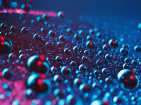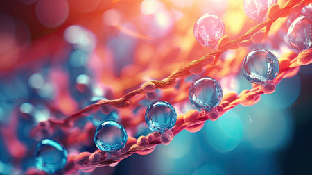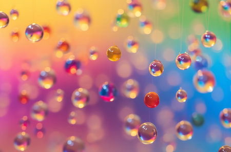 AI Generated. Close-up of colorful drops liquid bubbles molecules background