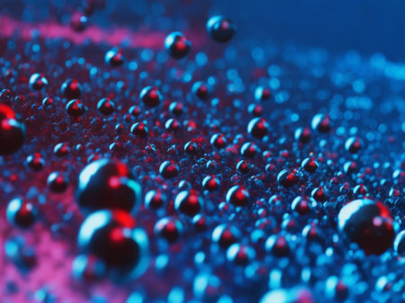 Tiny shimmering beads cling to a vivid cobalt background, creating mesmerizing reflections and a sense of freshness and clarity.