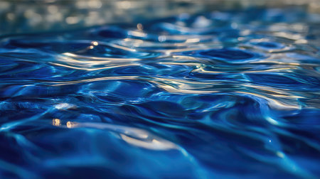 This stunning close-up image captures the tranquil and dynamic beauty of blue water, showcasing gentle ripples and reflections under soft natural light.