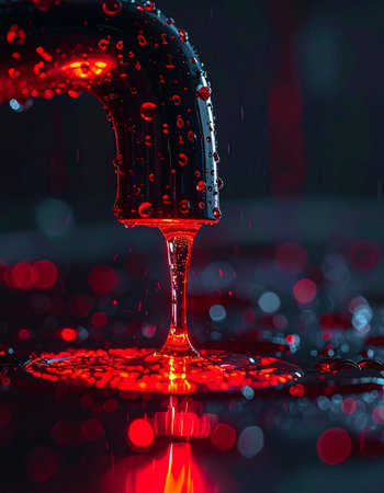 In the quiet of the night, a single faucet drips under a mysterious crimson glow.