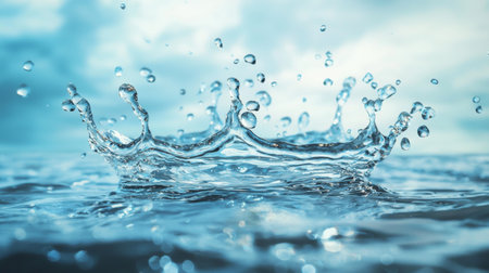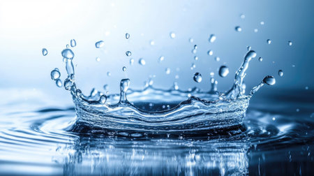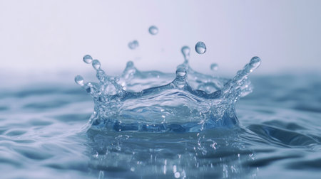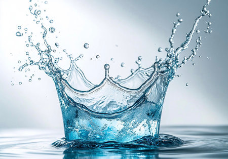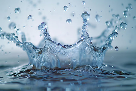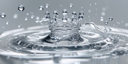 Water crown splash with liquid drops against smooth backdrop