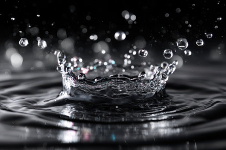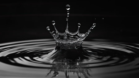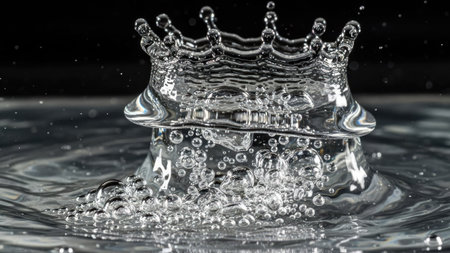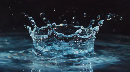 Captivating water crown splash on reflective surface, dark background