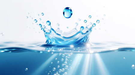 Dynamic Water Splash with Bubbles and Sunlight Rays on Light Background