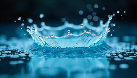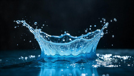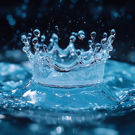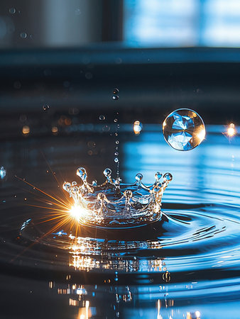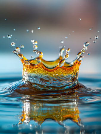 Water droplet impact creates a vibrant crown splash effect