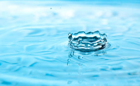 Drop of water. Blue water drop. Water splash close-up.