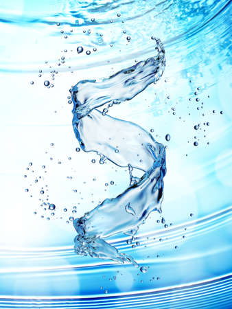 The gush of water of a fountain. Splash of water in the fountain, abstract image. bokeh of blue water