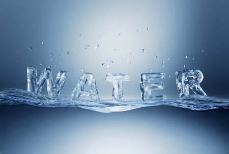Dynamic fresh water splash creatively spells out word. tranquil light blue backdrop, showcasing nature elegance with floating liquid letters and waterline on white