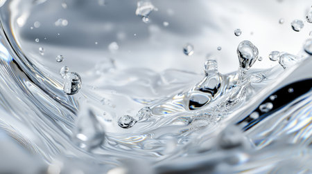 A dynamic abstract background featuring transparent water and gel textures, ideal for conveying hydration and skincare benefits.