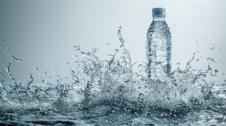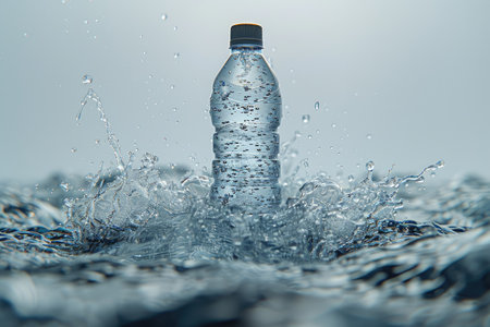 mineral water bottles drinking with splash spilling out liquid and bubbles advertising professional photography