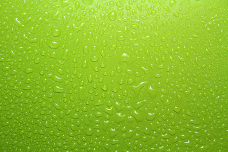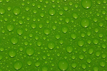 Water drops on green background. Abstract backdrop, copy spase for your text