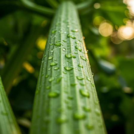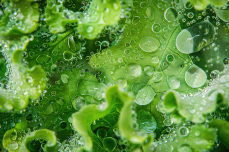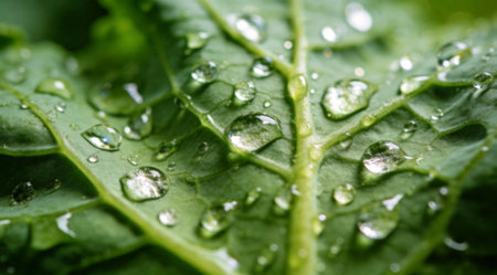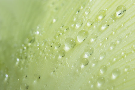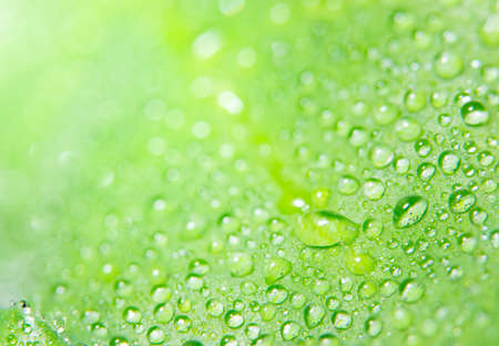 macro water drops on green plant leaf for natural background, wallpaper or backdrop use