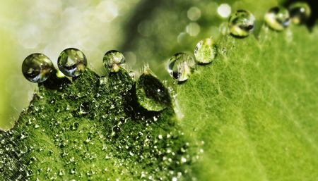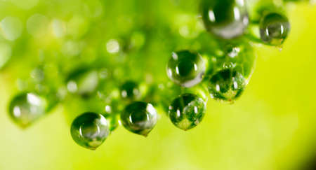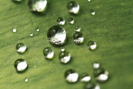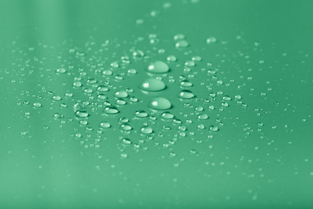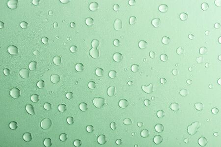 Drops of water on a color background. Green. Shallow depth of field. Selective focus. Toned.