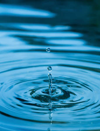 Drop of water falling into water surface, macro photo