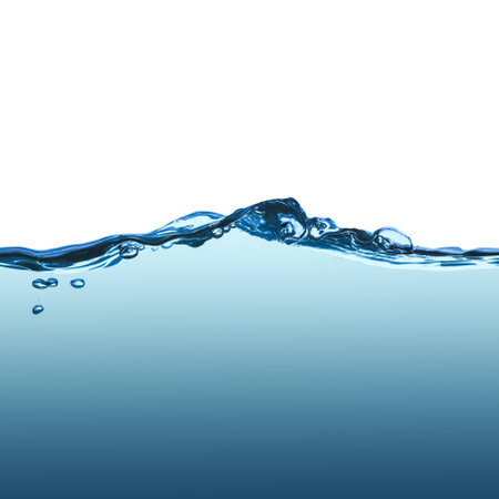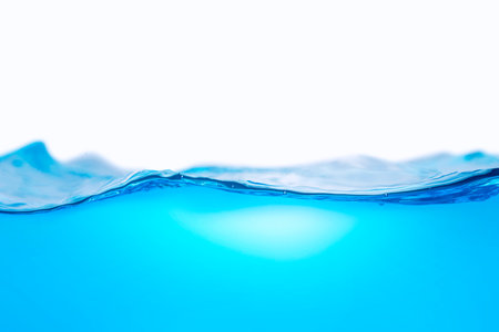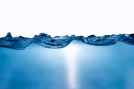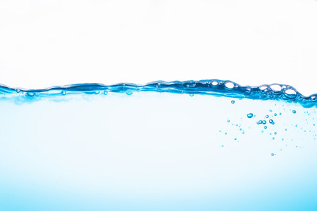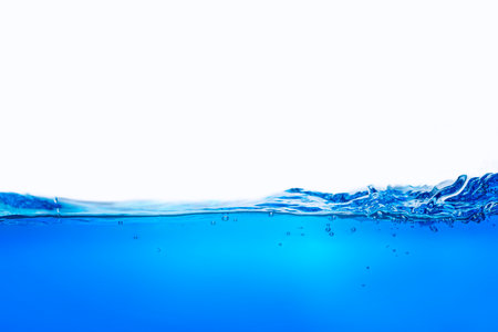 Water surface side view with bubbles and waves in the isolated background.