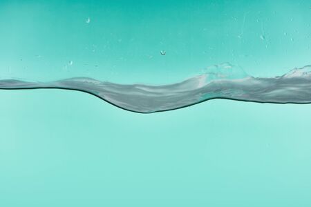 wavy transparent water on turquoise background with leaking drops