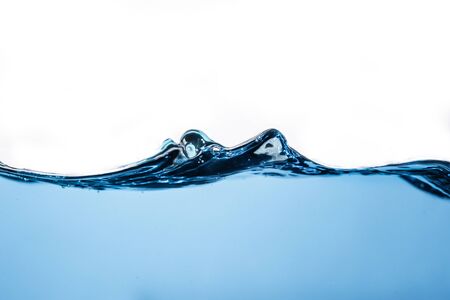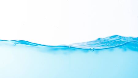 Surface of the blue water waves splash on a white background