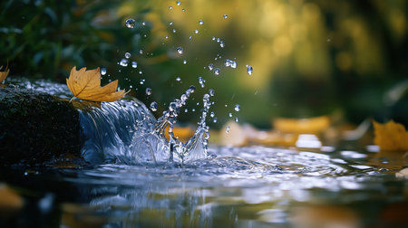 Tranquil pond capturing the beauty of water ripples and dripping in high quality imagery