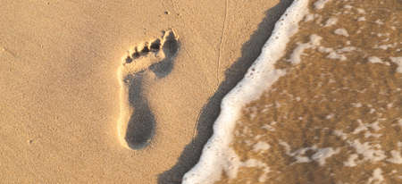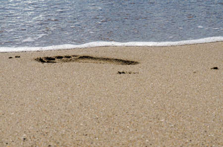 footprint left on the sand of the sea shore with the wave that comes back