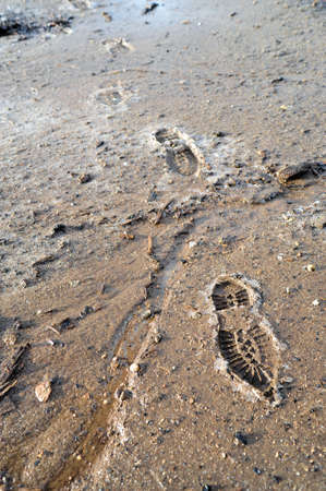 trace of shoes on a wet sandy beach