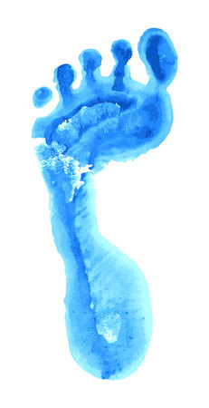 footprint blue and white paint. Blue prints of feet.