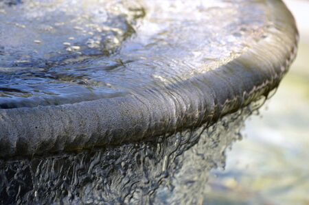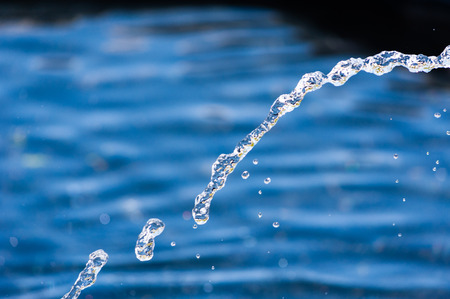 Close up water drops flowing from fontain.