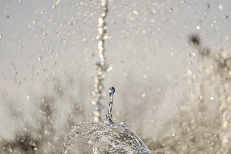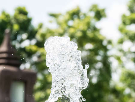 Splashes of water from a fountain in the park. Shallow depth of field