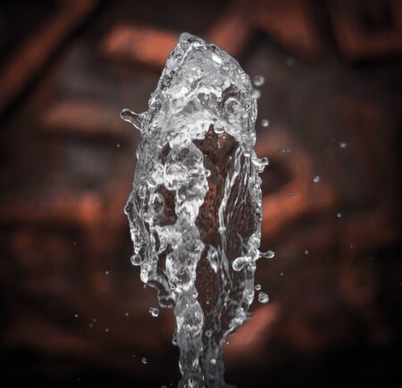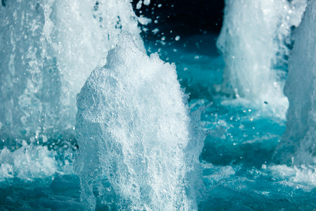 The gush of water of a fountain. Splash of water in the fountain, abstract image. bokeh of blue water