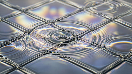Raindrops falling on smooth surface of water. water droplets affect the surface, forming rings on the surface.