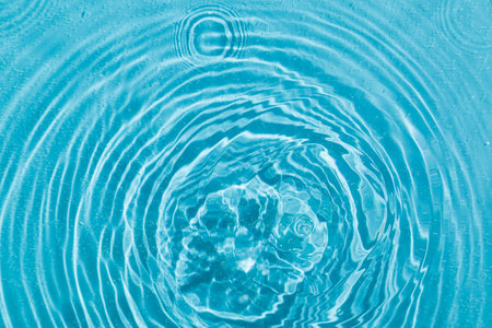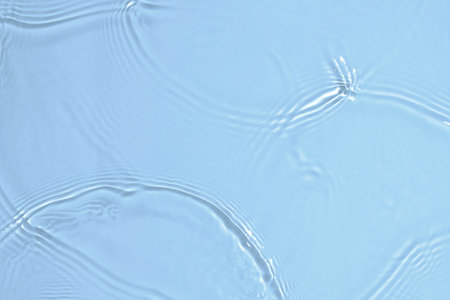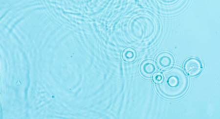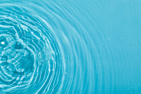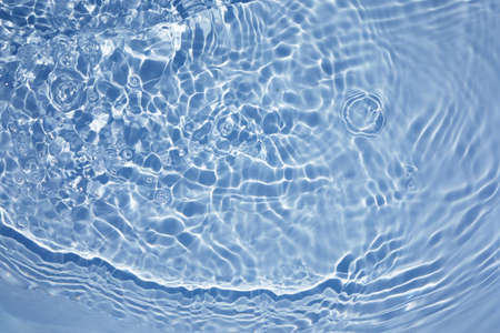 Abstract cosmetic water background for spa and moisturizing medical cosmetics. Blue water texture, blue water surface with rings and ripples. Spa concept background.