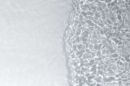 Water texture with waves on the water overlay effect for photo or mockup. Organic light gray drop shadow caustic effect with wave refraction of light. Banner with empty space.