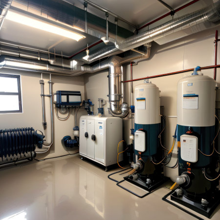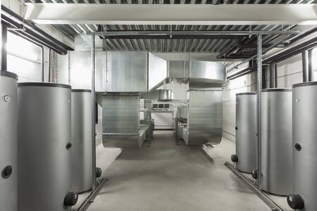 interior of a room with industrial boiler and ventilation