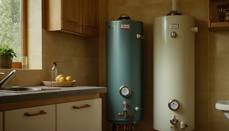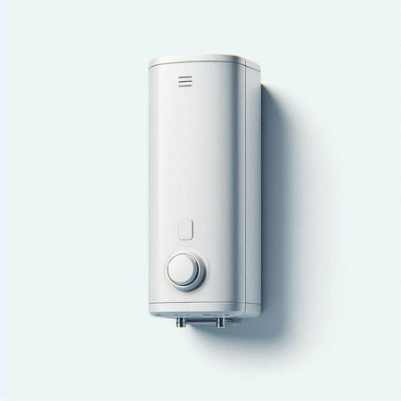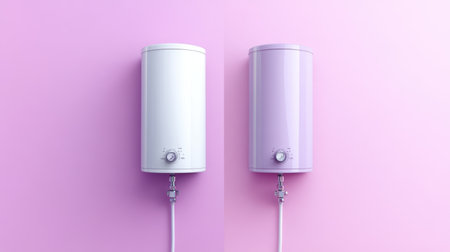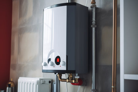 A compact, stylish water heating system showcases advanced technology and streamlined pipes in a minimalist interior.