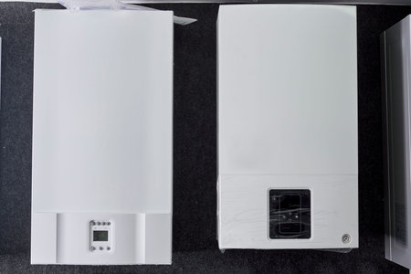 Electric boilers for water heating. Selective focus background with copy space for text. Illustrative editorial. September 24, 2021 Balti Moldova.