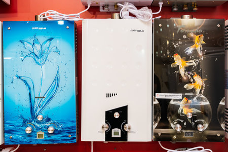 October 18, 2022 Beltsy, Moldova. For illustrative editorial use. Geysers or water heaters
