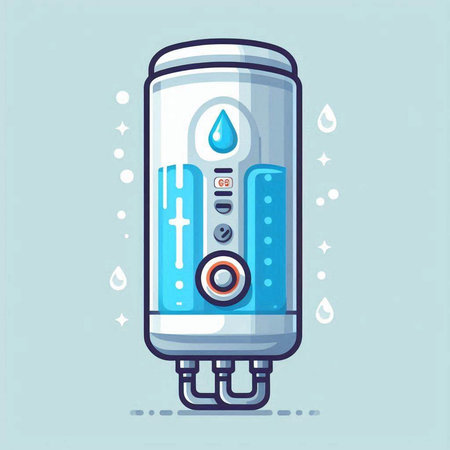 Water heater with water drops. Vector illustration in flat cartoon style.