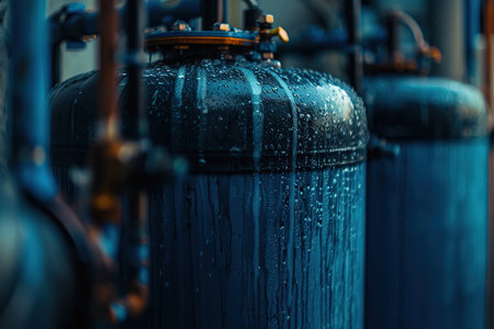 Blue industrial cylinders water filters