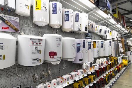Gryazi, Russia - Aug 30. 2016. A Gas boilers in hypermarket Prorab