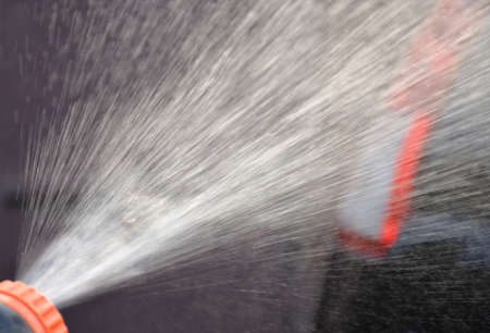 A selective focus shot of a hose water stream