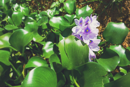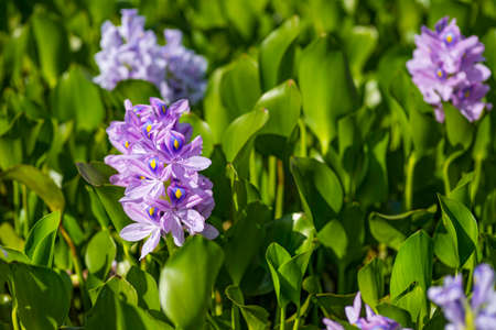 Water hyacinth flowers. Pontederiaceae aquatic plants native to Brazil. Light purple flowers bloom from August to October.